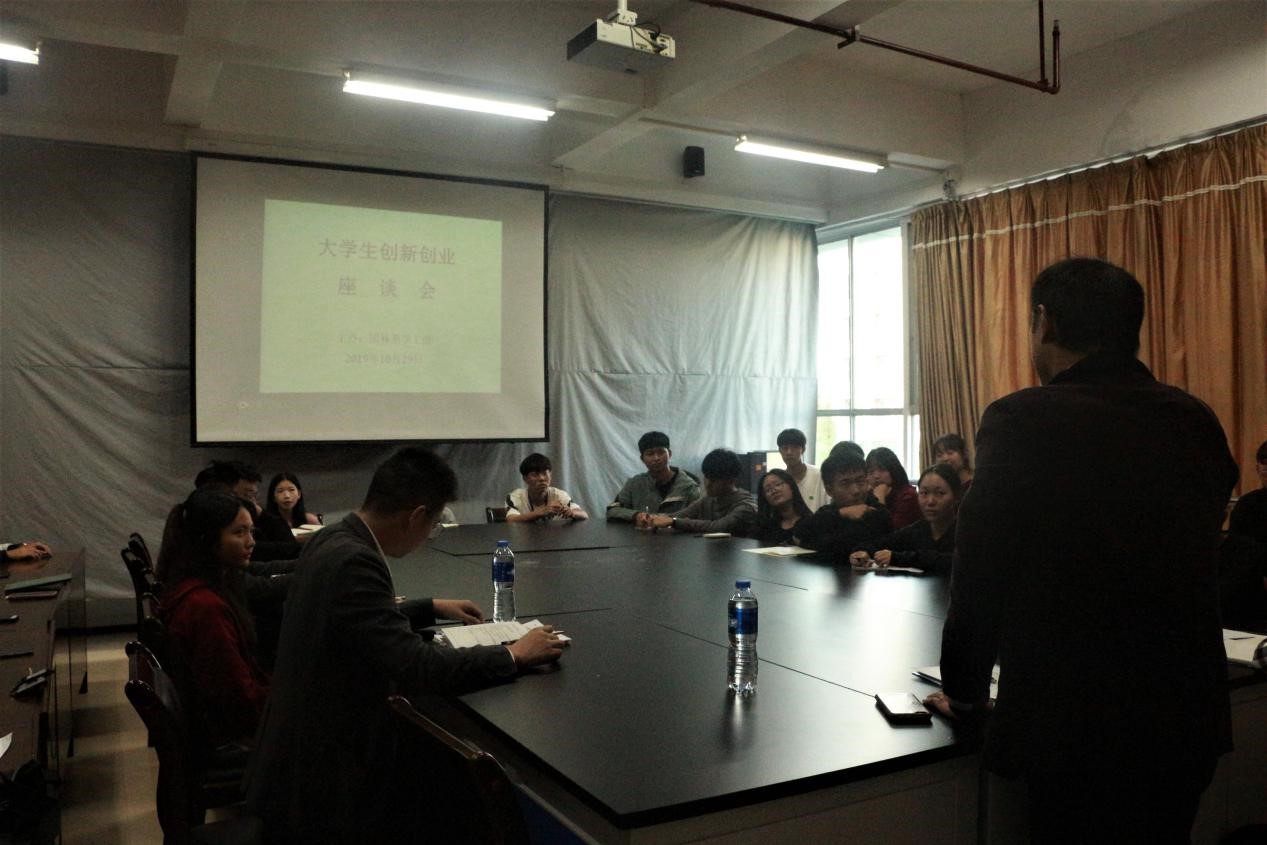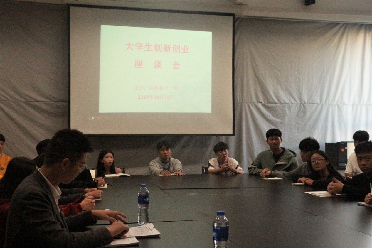 2019年10月29日下午16时,园林系于实训一三楼系会议室召开大学生创新创业座谈会。本次座谈会旨在为我系大学生引入创新创业新思想,主讲人是来自台湾阳光学院的黄柏钦教授。园林系党总支副书记陈剑勇、园林系学生科长兼团总支书记吴昊以及有意愿创新创业的同学参加会议。