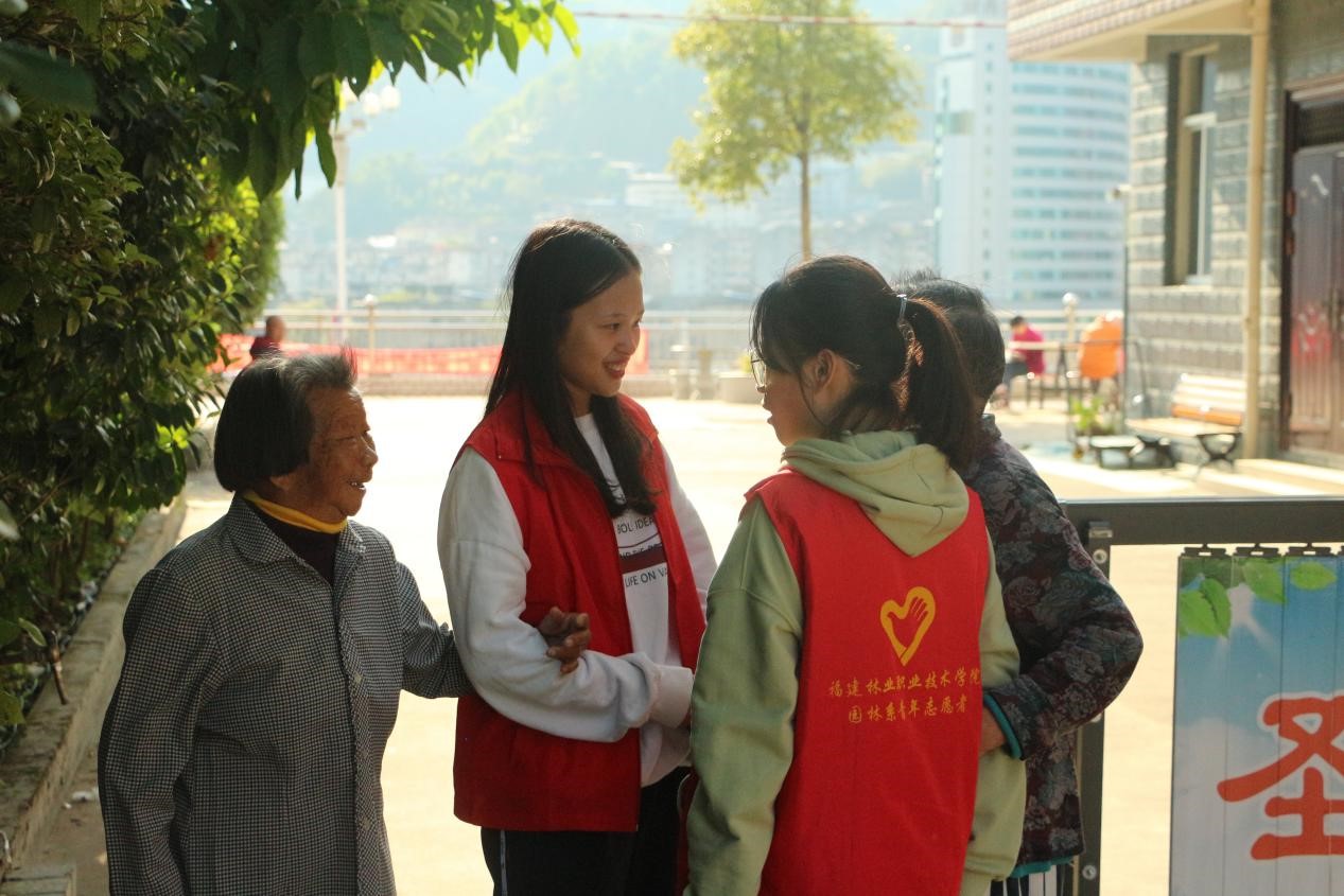 到达护理院后,志愿者们纷纷搀扶行动不便的爷爷奶奶们,陪同他们散步唠家常,听老人们讲述生活趣事,帮老人们做绿植装饰,用朴实而真诚的行动表达着对老人的关爱。平常冷清的护理院一下子热闹起来,为护理院带来了林职院的温暖。最后志愿者们一同帮助护理院打扫卫生,与护理院的老人们一起合影留念。
