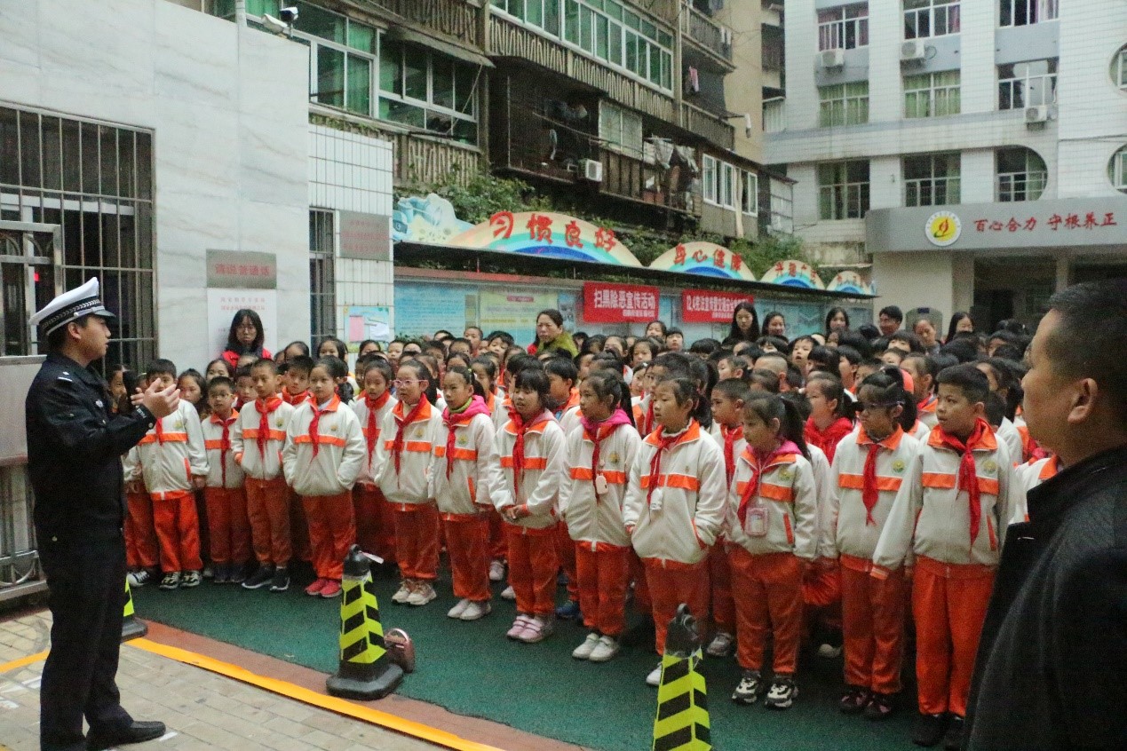 2019年11月28日上午8:40,园林系志愿者们在人工湖集合,一同前往延平区实验小学,与延平区交警大队民警一同协助校方给小学三年级全体学生开展以“守规则、除隐患、安全出行我能行”为主题的交通安全主题教育实践活动。此次活动由延平区交警大队民警陈警官主持。