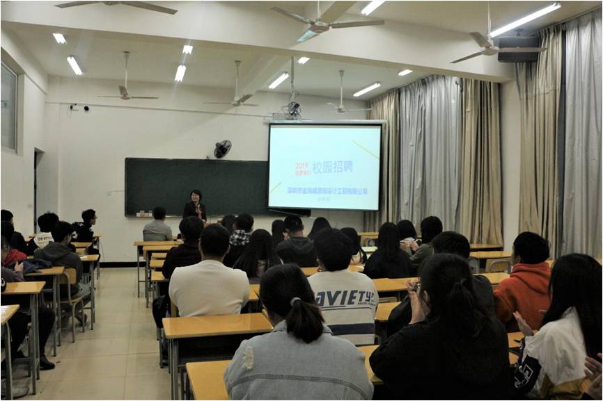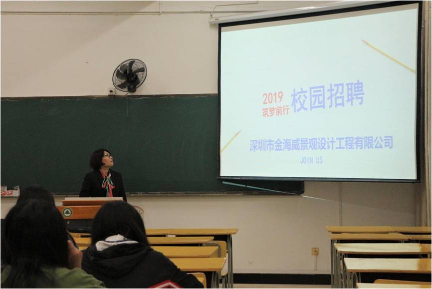11月22日晚上19点,园林系在实训四705教室举办深圳金海威景观设计工程有限公司专场招聘会。招聘会由公司人事部杨经理主持。园林系辅导员吴锦鸿老师和园林系毕业生到场参加。