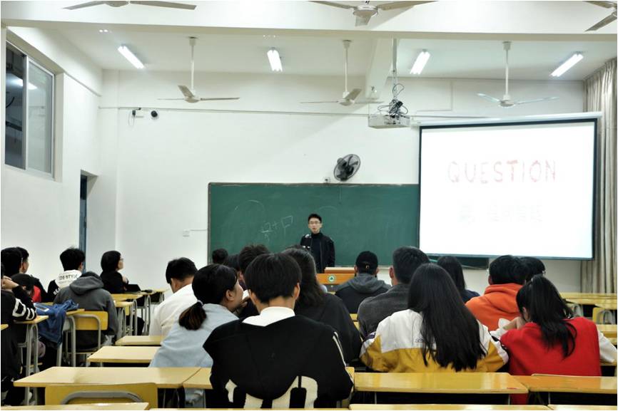 杨经理介绍了自己及公司职位,并询问大家对园林景观方面的理解,同学们热情地纷纷举手,表达自己对本专业的了解。紧接着,杨经理介绍公司成立于2000年,主要做城市照明、水景水处理、园林环境景观设计与施工、园林用品的销售等,讲述“关于我们”、“岗位计划”、“发展平台及薪酬”、“应聘流程”四个重点。在提问答疑中,同学们积极提问对公司某方面的疑惑,杨经理耐心地一一回答每个同学的问题。