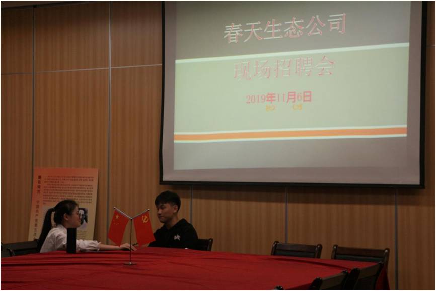 11月6日晚上19点,园林系邀请到春天生态工程有限公司于礼堂开展专场招聘会。招聘会由系党总支副书记陈剑勇主持,系全体毕业生参加招聘会。
