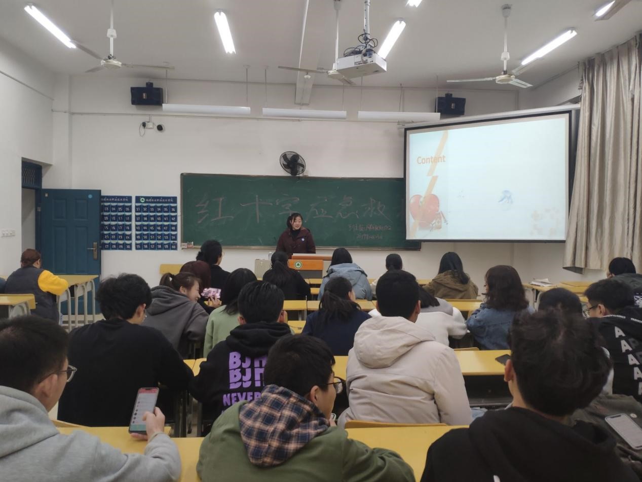 活动中,学委刘雨思细致的讲解了如何正确拨打急救电话等基本应急常识以及如何应对突发状况的措施、方法手段。本次的讲座以理论知识讲解和救护技能操作相结合的方式进行。