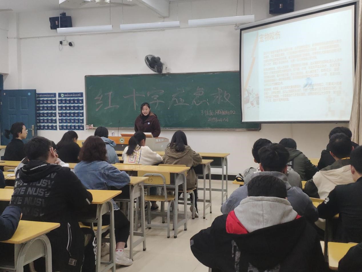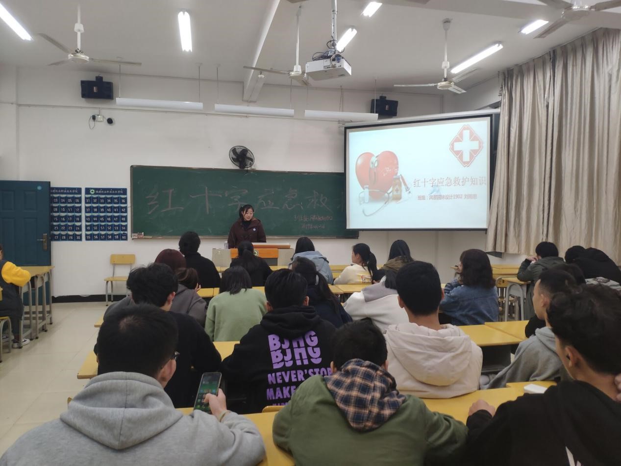 2019年12月23日傍晚18:00,园林系风景园林设计1902班在实训四612教室开展红十字应急救护知识宣传教育主题班会。本次主题班会由风景园林设计1902班学委刘雨思主持。