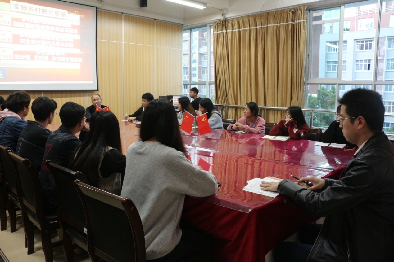 2019年11月14日中午,园林系主任黄华明在系会议室为学生作主题为《争做一位合格的生态文明守护者》思想政治理论课。系学生代表听取了课程。