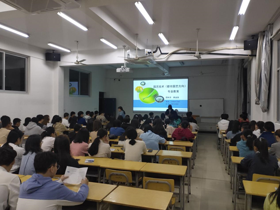 讲座上,黄云玲老师、黄淑燕老师和唐必成老师就园林系系部专业的专业特色、就业前景进行了介绍,针对各专业所学的主要内容以及如何学好专业,适应专业岗位的能力培养等方面进行了详细的阐述。