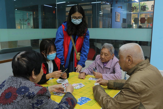志愿者们热情洋溢地进入圣爱老人护理院,志愿者们的到来给老人们平淡的生活增添了一抹光彩,老人们热情地拉着志愿者们,与他们一起聊天。与此同时,一位喜爱象棋的老爷爷与志愿者架起了棋桌,开始了对弈。随后,志愿者也与其他老人开展一系列互动,如:打乒乓球、唱歌、跳舞等。欢声笑语充斥着整个圣爱老人护理院,青年大学生志愿者的到来不仅给老人们带来了心灵的慰籍,也使老人们感受到了园林系的温暖,传承了尊老、爱老的中华传统美德,使整个院内洋溢着温馨、祥和的气氛。时间易逝,与老人们在一起的时间更是如此,志愿者们依依不舍的跟老人们告别。老人们希望志愿者们以后常来,志愿者们纷纷点头应许了下次的赴约。