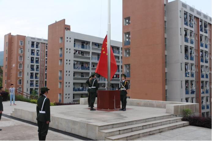 升旗仪式于7:00准时开始,当雄壮有力的《义勇军进行曲》响彻了整个校园时,国旗在歌声中冉冉升起,在场老师、同学们集体行注目礼。红旗飘扬,祖国的历史缓缓随之舒展在眼前,对祖国的自豪感随国歌油然而生。升旗完毕后,刘延君老师上台在国旗下进行了简短而精彩的发言,在清晨微凉的寒风中,鲜红的五星红旗与刘延君老师精彩的发言如同火焰一般充分点燃了同学们对未来的高度热情。