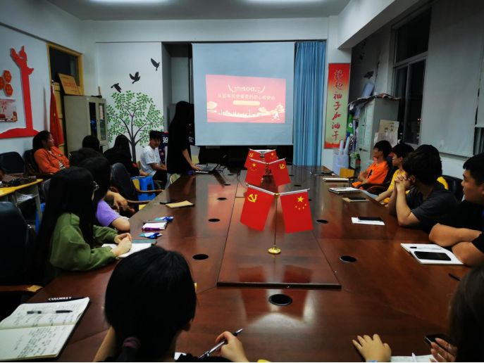 2021年4月26日晚,为热烈庆祝中国共产党成立100周年,园林系两委会全体学生干部于系党员活动室开展党史学习系列活动,本次活动的主讲人分别为学习部副部长和记者站副站长。学习会由系团总支负责人吴锦鸿老师主持。