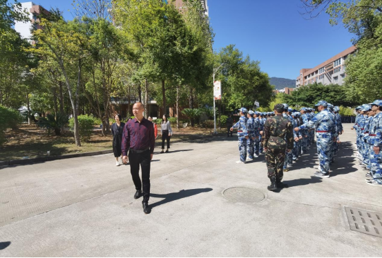 陈剑勇书记向参训教官们详细了解我系新生军训工作开展情况,并对教官的付出与教导表示感谢。他表示,园林系会全力配合教官们开展各项军事训练,希望教官们在确保训练进度的同时,关注学生思想动态,与相关班级辅导员保持密切的沟通交流,确保军训工作安全有序开展。军训是同学们“大学第一课”,不但能增强集体荣誉感,还能让同学们树牢规矩意识,厚植家国情怀,希望同学们继续克服困难,全身心地投入到军训工作中,争取优异成绩,为大学生活开好头。