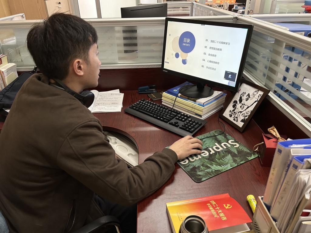 班会采用多种形式,围绕“德育、智育、健康、安全、劳动”等五个方面开展。辅导员们提醒同学们要做好个人防护工作,当个人健康的第一责任人。同时,带领同学们深入学习领会党的二十大精神,还鼓励同学们新学期要确立新的奋斗目标,制定新的学习计划,以奋进姿态开启2023年春季学期新征程,以优异成绩迎接学院建校70周年。