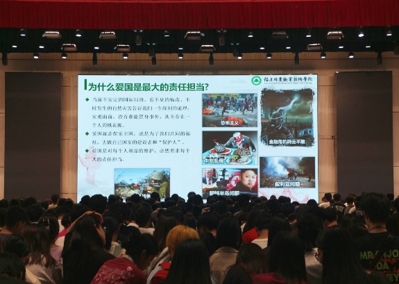 讲座伊始,李佳老师便提出爱国是第一位,是最大的责任担当,是每个人利益的维护。并提到青年与国家的关系,青年与时代的关系,强调“青年兴则国家兴,青年强则国家强”,呼吁我们青年一代要“怀抱梦想又脚踏实地,敢想敢为又善做善成,立志做‘有理想、敢担当、能吃苦、肯奋斗’的新时代四有好青年”。