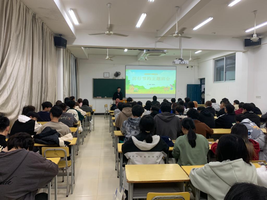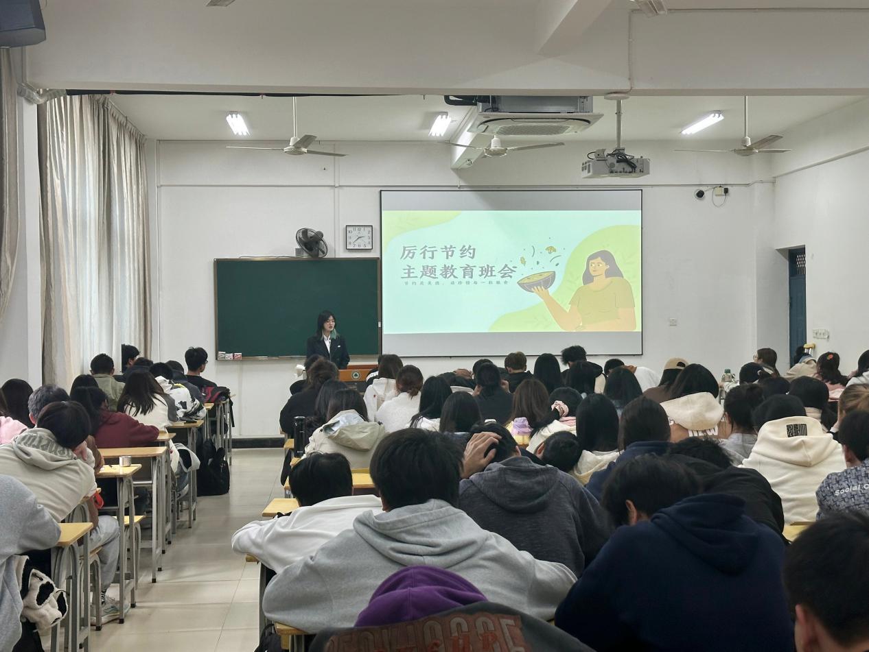 班会上,辅导员们以身边小事讲起,针对剩饭剩菜、宿舍不断水电等常见的浪费现象。同时引导同学们讨论这些浪费现象,通过讨论充分了解到节水、节粮、节电的重要性,起到了厉行节约教育的效果。