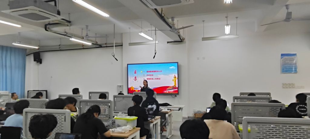 聚焦爱国主义,凝聚奋进力量。辅导员们组织学生观看红色经典影片,结合历史背景为学生解读新中国发展的光辉历程与伟大成就,引导学生深刻理解国家富强、民族振兴的现实意义。在辅导员的带动下,学生在沉浸式体验中激发强烈民族自豪感与历史使命感,纷纷表态,将把个人理想追求融入国家发展大局,为民族复兴贡献青春智慧。