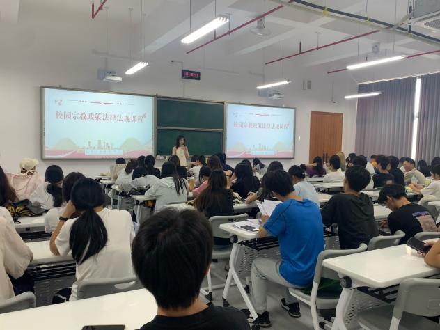 普及宗教法规,树立正确观念。辅导员通过政策解读、典型案例剖析,向学生清晰阐述国家宗教工作基本方针与法律法规,明确校园禁止宗教活动的规定,帮助学生树立马克思主义宗教观,引导学生崇尚科学、理性思辨,自觉遵守校纪校规,共同维护校园和谐稳定。