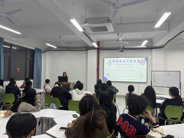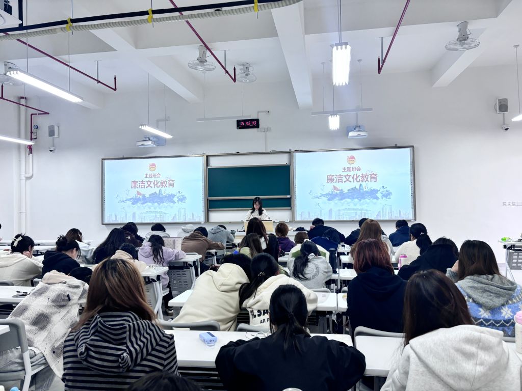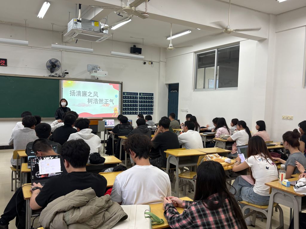 班会中,辅导员紧扣“廉洁修身、诚信立身”主题,从学术不端、评奖评优中的诚信底线,到日常生活中的勤俭节约、拒绝攀比,再到未来职业道路上的廉洁从业准则,深入浅出剖析廉洁与个人成长、校园风气、社会发展的密切关联,明确青年学生应坚守的廉洁底线,引导大家自觉远离攀比享乐、杜绝投机取巧,自觉抵制不良风气,主动成为廉洁文化的践行者、传播者与弘扬者。