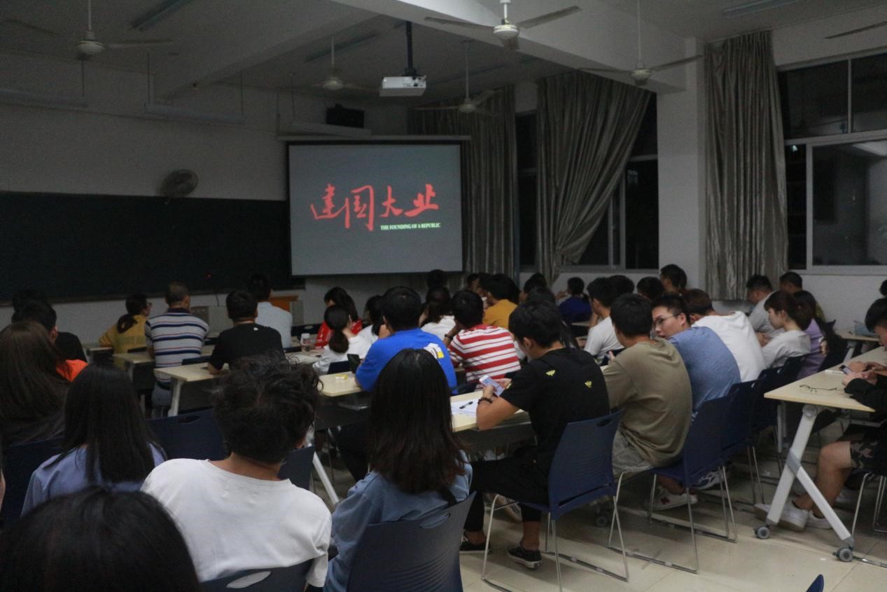 首先,吴锦鸿老师向大家讲解本次活动安排,为庆祝中华人民共和国成立70周年,特组织大家共同观看《建国大业》影片,并强调了爱国主义教育的重要意义。接着,在座的党员和入党积极分子怀着无比自豪和激动的心情开始认真观看影片,期间不忘记录下自己的观影感受。