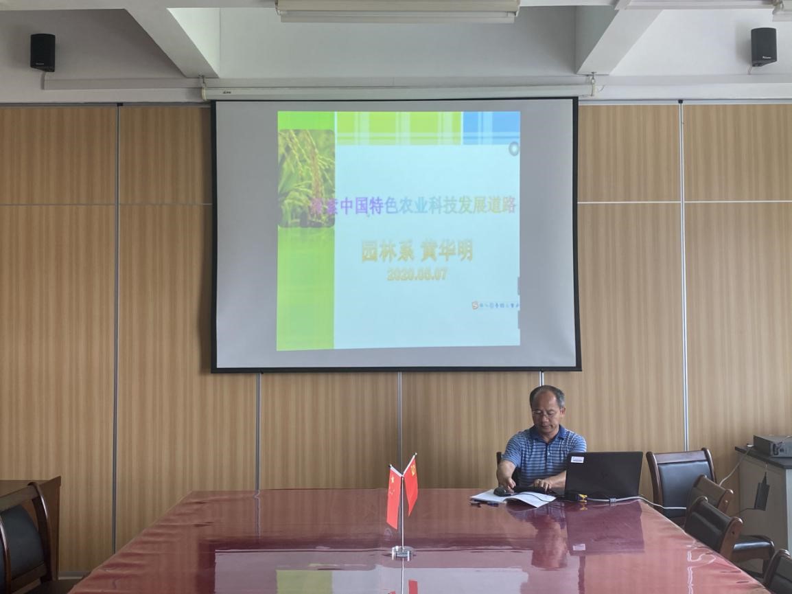 园林系教工支部书记黄华明做“探索中国特色农业科技发展的道路”为题的党课