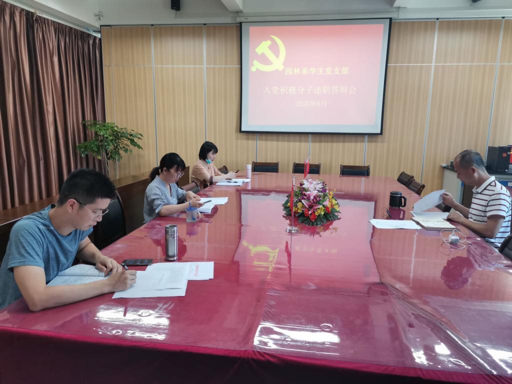 2020年6月16日15点,园林系学生党支部于腾讯会议线上开展入党积极分子候选人“五述”答辩会。支部全体党员和本次入党积极分子候选人参加会议。会议由支部书记吴锦鸿主持。