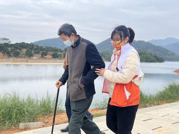 活动开始之际,支部学生党员提前抵达与残联活动负责人员汇合,大家齐心协力,帮助各位残障人士有序上车,顺利出发。此次活动带领残疾人参观了万寿塔、蛇王庙、钟灵庵,伴随着讲解员在一侧进行详细的讲解。在参观之余,残疾人们还体验到了茶文化,以及关于樟湖坂和党的二十大的有奖竞猜等活动。大家其乐融融,乐此不疲,收获颇多,进一步促进了残障人士文化生活、体育生活的双向发展。