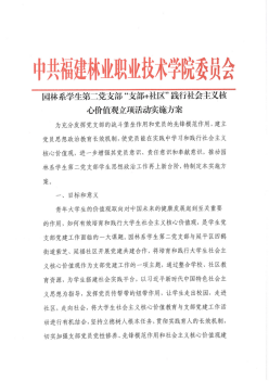 园林系学生第二党支部联合紫芝、延福社区党建共建支部党建教育,坚持宣传教育、示范引领、实践养成相统一,分阶段、多渠道,在园林系学生第二党支部学生党员中开展培育和践行社会主义核心价值观主题教育,通过“三个发力”使社会主义核心价值观融入学生党员的学习生活和实践活动。立项活动分为宣传教育、理论提升和实践养成三个方面进行开展,构建“支部+社区”工作模式。
