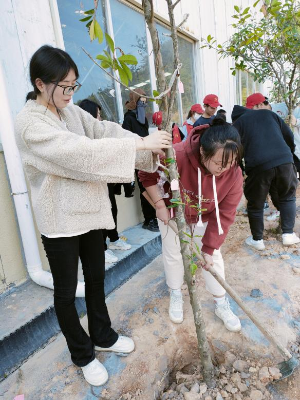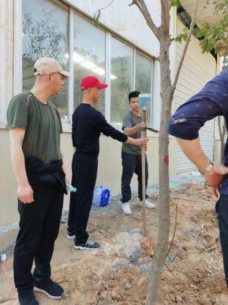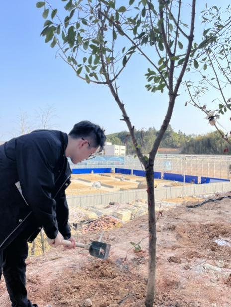 在植树现场,处处呈现出一派热火朝天的景象。大家分工合作,干劲十足。有条不紊地栽种绿苗,挖坑、拆苗、扶苗、种苗、浇水等各环节衔接有续,样样做得认真到位,个个忙得满头大汗,一派热火朝天的劳动场面。历经数小时,一颗颗新栽苗木迎风挺立,为校园增添一抹新绿,留下无限希望。