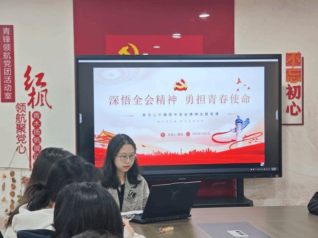 为深入学习贯彻党的二十届四中全会精神,引导广大师生党员准确把握全会核心要义,推动学习贯彻习近平新时代中国特色社会主义思想主题教育走深走实,强化学习型党支部建设。2025年12月2日,园林系学生第一党支部于“一站式”学生社区开展“深悟全会精神,勇担青春使命”专题党课,党课由支部书记倪海奔主持, 教师党员曹婧同志主讲,支部师生党员、积极分子参与。