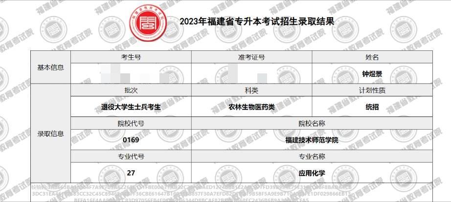 其中支部党员钟煜景被福建技术师范学院应用化学专业拟录取;支部预备党员易诗阳被阳光学院物联网工程专业拟录取;支部积极分子陈忻怡、王佳娜、邹垣丹分别被闽南科技学院汉语言文学专业、泉州信息工程学院审计学专业、集美大学诚毅学院金融学专业拟录取。