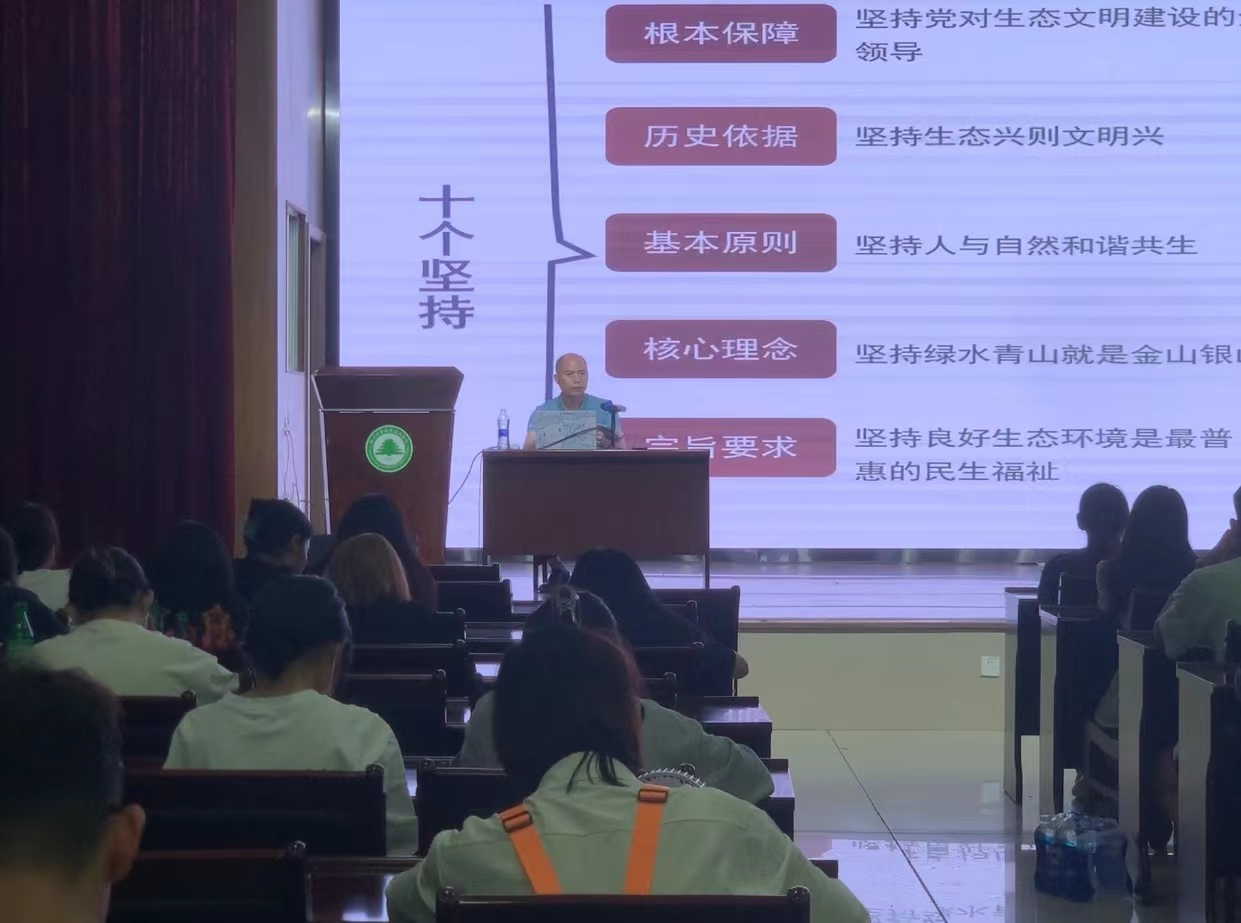 党的二十大报告提出,“中国式现代化是人与自然和谐共生的现代化”,明确了我国新时代生态文明建设的战略任务,总基调是推动绿色发展,促进人与自然和谐共生。为贯彻落实党的二十大精神,深入开展学习贯彻习近平新时代中国特色社会主义思想主题教育,5月30日晚七点,园林系党总支书记陈剑勇在江南校区礼堂开展主题教育专题党课,各支部全体党员、积极分子以及陈剑勇书记所挂钩班级风景园林设计2201班共同参与。