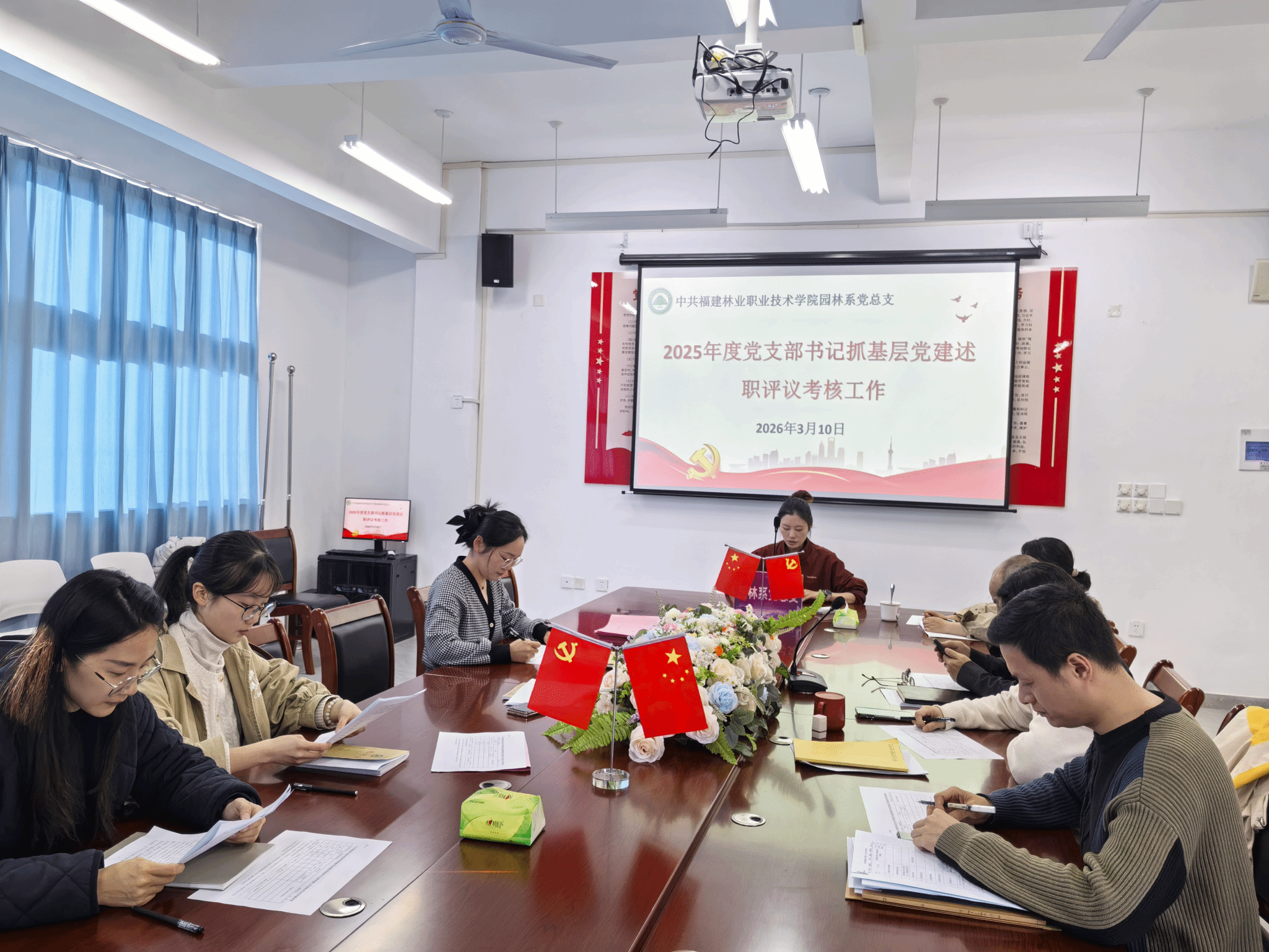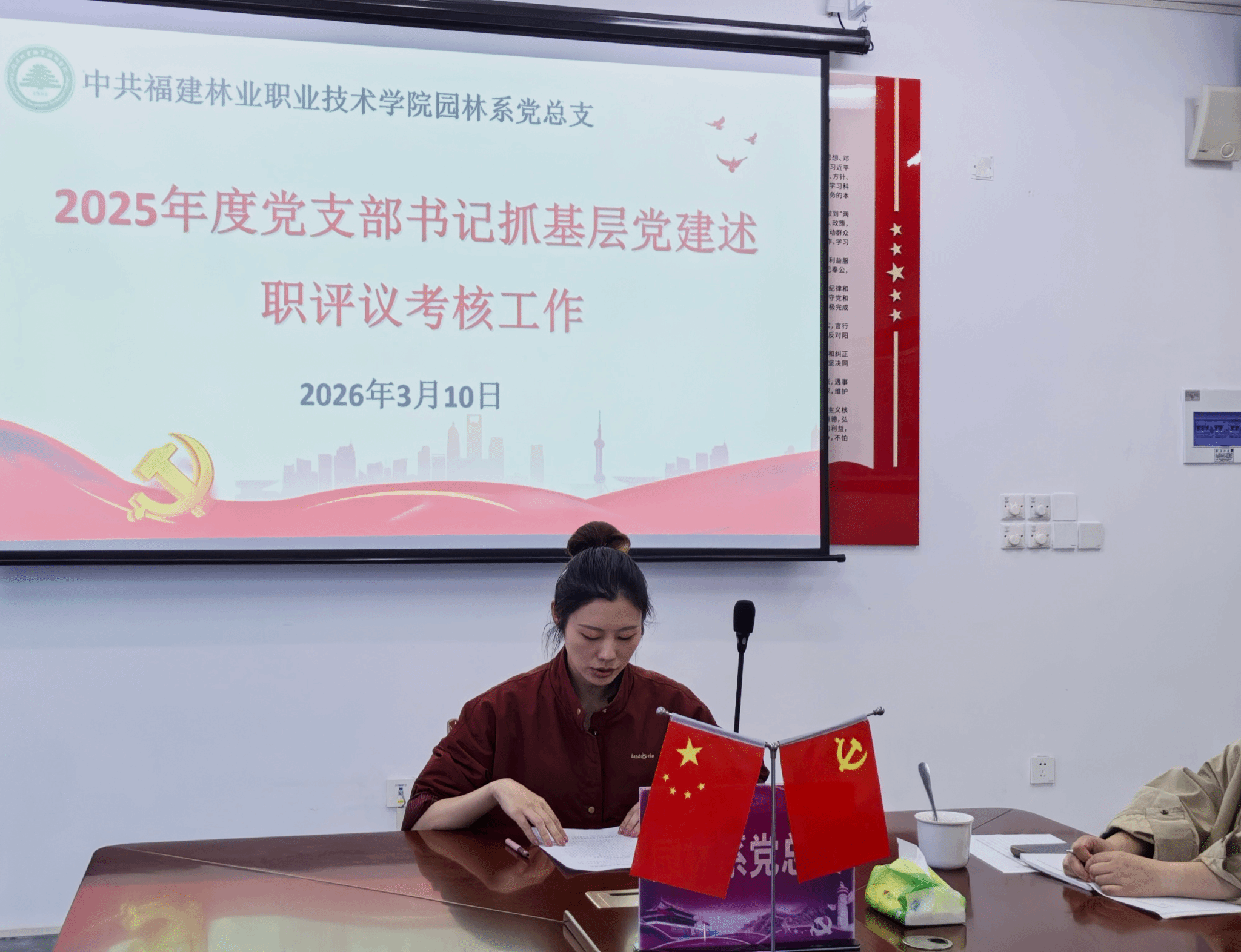 为深入践行新时代党的建设总要求与新时代党的组织路线,持续推动学院基层党支部建设标准化、规范化、精细化,不断增强基层党组织政治功能与组织功能,切实筑牢党支部战斗堡垒,激励广大党员担当作为、发挥先锋模范作用。根据《中共福建林业职业技术学院委员会关于做好2025年度党总支书记和党支部书记抓基层党建述职评议考核工作的通知》,我系于2025年3月10日下午,组织开展2025年度各党支部书记述职评议会,听取3个基层党支部书记抓基层党建工作述职,并进行现场评议。园林系党总支成员、各党支部书记共同参加述职评议会议。会议由党总支书记黄淑燕主持。