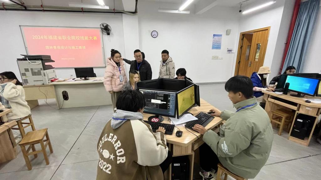 2023年12月23日,福建省园林景观设计竞赛于福建林业职业技术学院园林系计算机辅助设计实训室正式拉开帷幕。作为此次竞赛的重要一环,教工党支部党员张莹、张海莉、洪莉玲和黄艳真等同志肩负起了竞赛服务和保障的重任。他们早早就到达了比赛现场,开始忙碌地计算机布置场地、检查设施设备,以确保一切准备就绪。