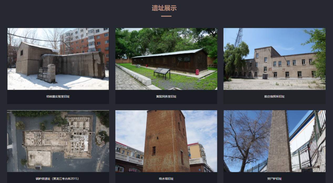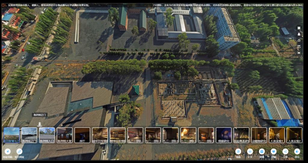 七三一部队作为侵华日军细菌战的大本营,不仅是近现代历史上日本殖民侵略、残酷掠夺、残杀中国人民的历史见证,也是日本七三一部队违反国际公约、违背医学道德,使用活人进行细菌实验最黑暗、最丑恶的历史记录。通过网上主题展馆可以收听观看基本陈列《反人类暴行——侵华日军第七三一部队罪证陈列》、展馆展厅VR以及《侵华日军细菌战档案史料专题展》、《战争•记忆•和平 —侵华日军第七三一部队史实记录与传播》等各类专题展览。还展示有结核菌实验室旧址、黄鼠饲养室旧址、航空指挥所旧址等遗址照片。