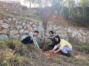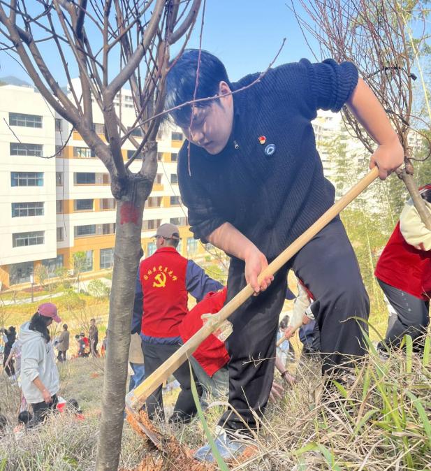 时逢三月,绿意正新。为深入学习贯彻习近平新时代中国特色社会主义思想,落实省委“深学争优、敢为争先、实干争效”行动部署,牢固树立“绿水青山就是金山银山”的发展理念,强化服务型党支部建设。2024年3月12日下午15:00,园林系学生第一党支部组织教师、学生党员前往福建林职院江南校区新建环校路斜坡区域开展“党建引领,绿美林职”植树节主题党日活动。