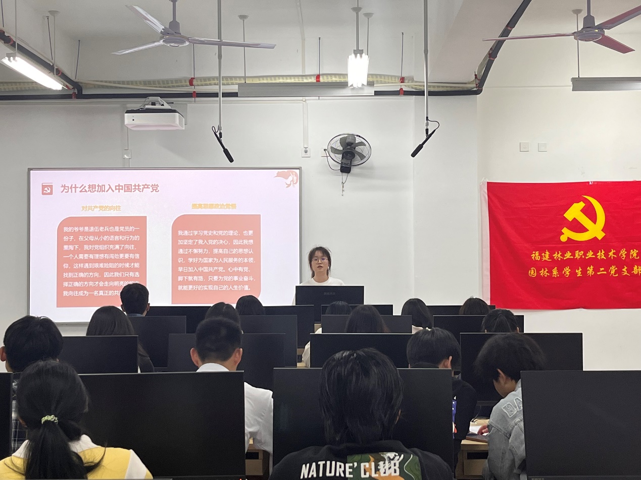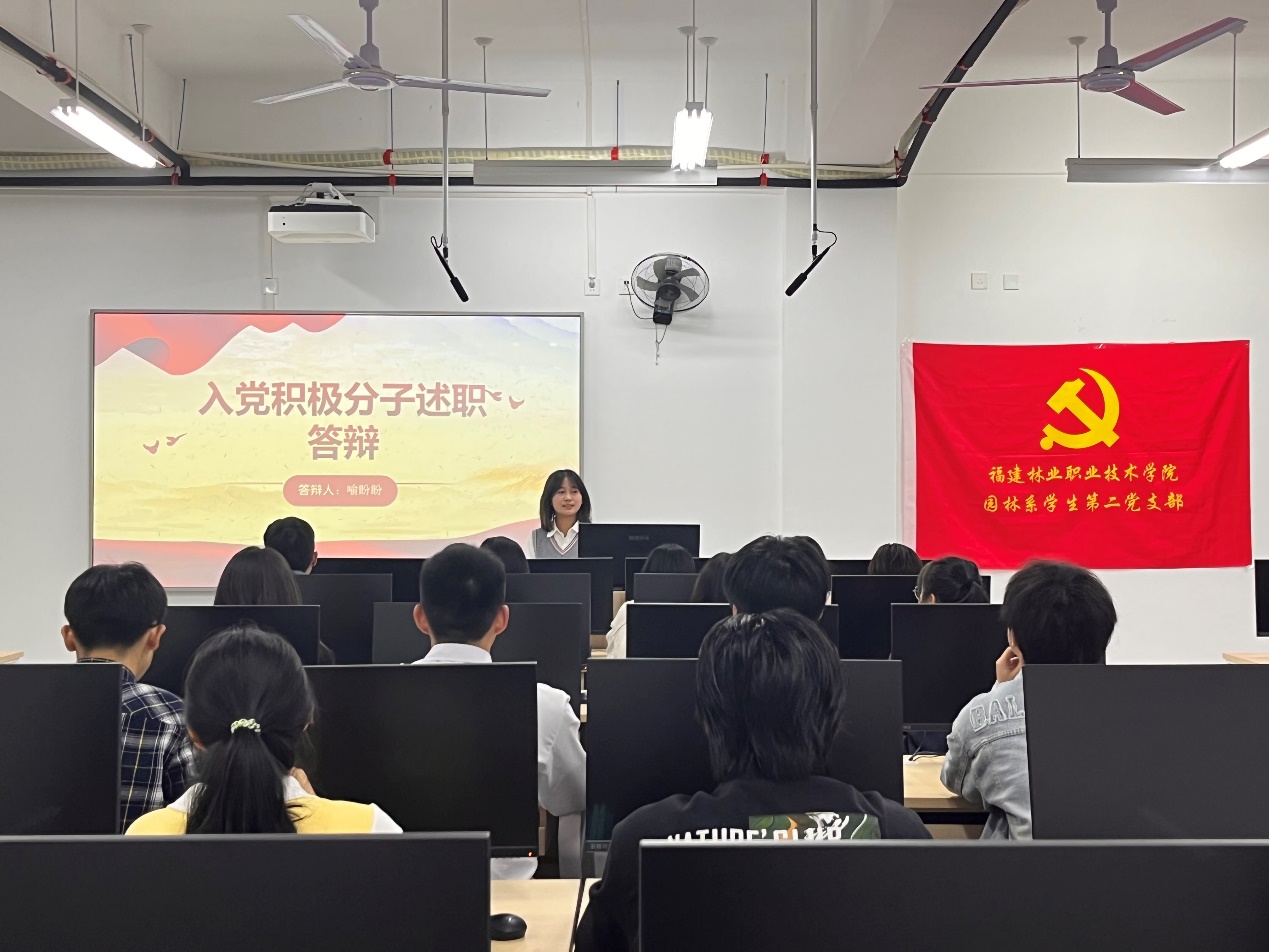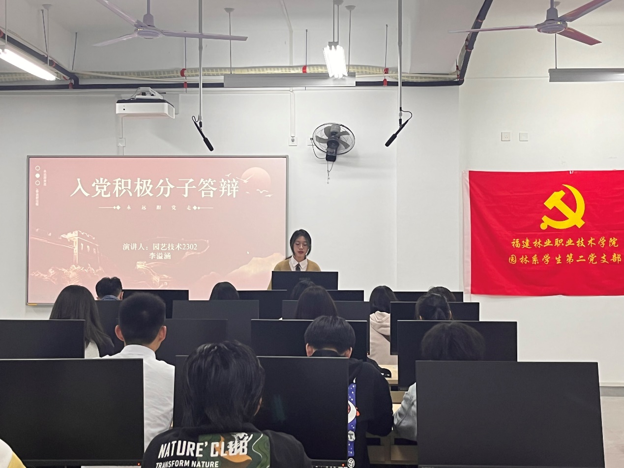2024年4月9日晚19时,园林系学生第二党支部于园林楼307教室召开入党积极分子候选人答辩会。会议由园林系学生第二党支部书记刘延君主持,支部预备党员、入党积极分子及入党积极分子候选人参加本次会议。