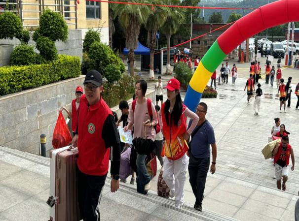 在踏入校园大门的那一刻,新生们会在志愿者们的引导下,有序地完成报到注册。在园林注册点,支部学生将协助老师帮助新生登记注册信息。支部志愿者们也会耐心地解答每一个新生和家长的疑问,为新生和家长们提供亲切的引导服务,确保他们能够顺利地完成注册登记、班级报到以及宿舍安排等各项手续。新生们与每一个志愿者携手进入校园,在志愿者们的陪伴下,新生们得到详尽的校园介绍,其中包括教学楼、图书馆、食堂、宿舍以及体育设施等,确保新生们对校园环境有一个初步的了解,并顺利入住宿舍。。