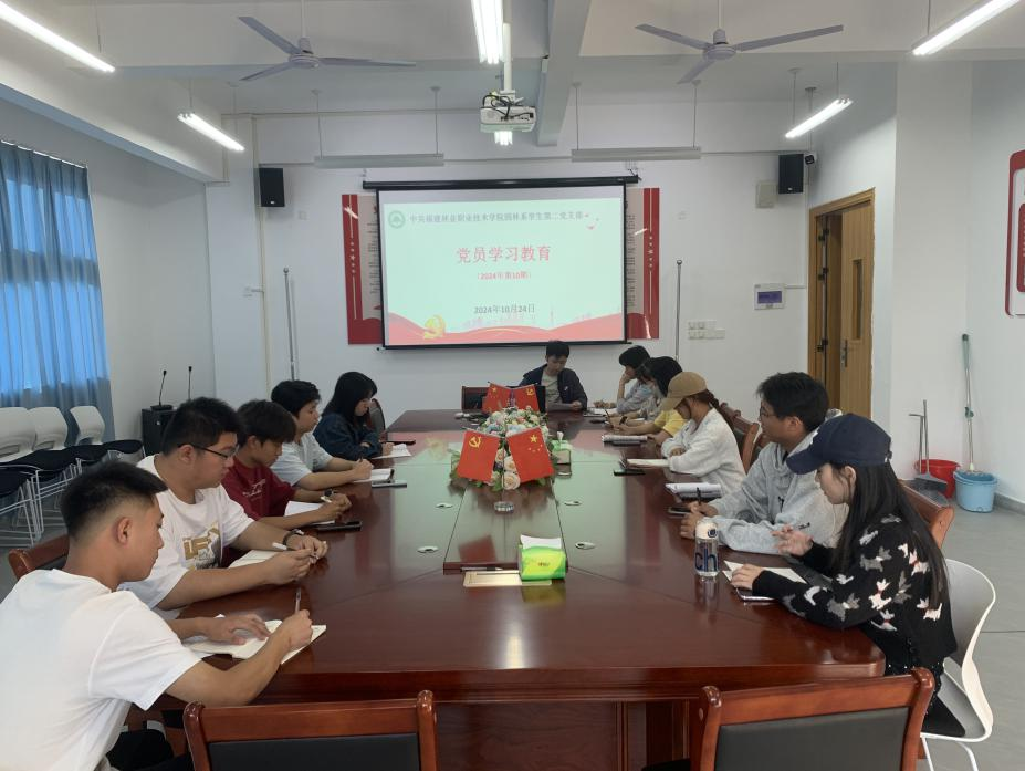 为深入学习上级重要讲话和重要指示批示精神,加强党员思想政治教育,用党的创新理论武装头脑、指导实践,巩固发展党纪学习教育成果。园林系学生第二党支部于2024年10月24日下午14点40分在园林系会议室组织开展2024年第10期党员理论学习教育会议,会议由支部书记刘延君领学,支部师生党员和积极分子参加。