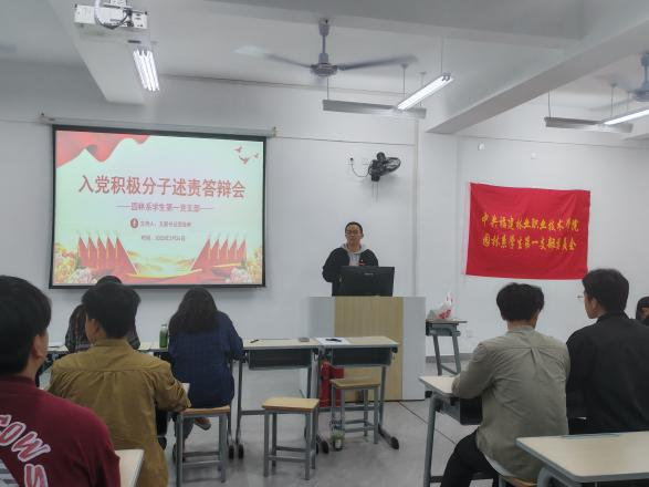 为深入学习贯彻党的二十大精神,推动学习贯彻习近平新时代中国特色社会主义思想主题教育走深走实,进一步考察入党积极分子候选人的政治素养和党性修养,吸纳更多具备较高政治思想意识和党性觉悟的入党积极分子向党靠拢,做好党员发展“入口关”。2025年3月26日晚19时30分,园林系学生第一党支部于园林楼605教室开展入党积极分子述责答辩会,会议由园林系学生第一党支部书记倪海奔主持,支部师生党员、入党积极分子候选人参加本次会议。