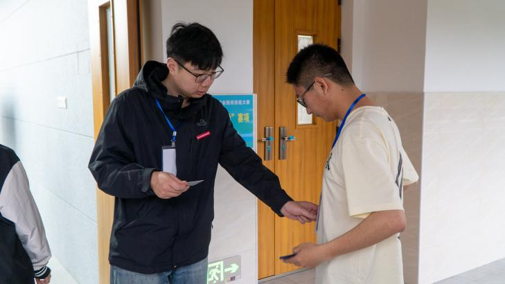 在“园林景观设计与施工”赛项中,各项准备工作进行得如火如荼。园林系教工党支部的党员志愿者们早早抵达赛场,细致入微地对设计赛场的设备进行全面检查与调试,同时认真开展赛场安全检查、安检及检录工作。他们严格核对每一位参赛选手的证件信息,积极协助工作人员布置场地、调试设备,全力确保比赛环境具备公平性、专业性与规范性。