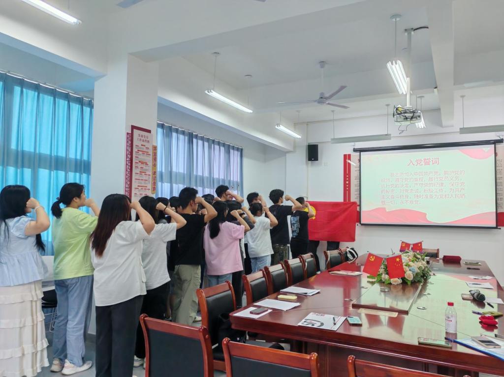 活动伊始,倪海奔同志首先为全体毕业生党员赠送政治生日贺卡,承载着党组织对党员的深切期许,更传递出党组织无微不至的关怀与温暖。随后,全体人员庄严肃立,整齐有序地列队站好。郑重佩戴上党徽,在熠熠党徽的映照下,面向鲜艳的党旗,齐声重温入党誓词。不仅彰显了党员对党的无限忠诚,更是一堂生动的党性教育课。时刻提醒着党员要铭记入党时的庄严承诺,自觉遵守党的章程,将入党誓词内化为行动准则,在人生的漫漫长路上终身践行,为党的事业不懈奋斗。