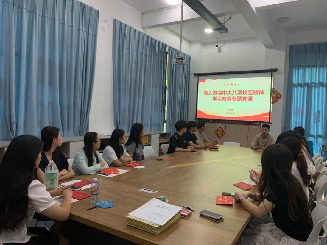 为深入贯彻中央八项规定精神,进一步强化支部党风廉政建设,引导师生党员筑牢廉洁自律的思想防线。6月17日下午,园林系学生第二党支部书记刘延君在园林楼两委会办公室开展深入贯彻中央八项规定精神学习教育专题党课,此次党课由支部书记刘延君主讲,支部全体毕业生党员参加。