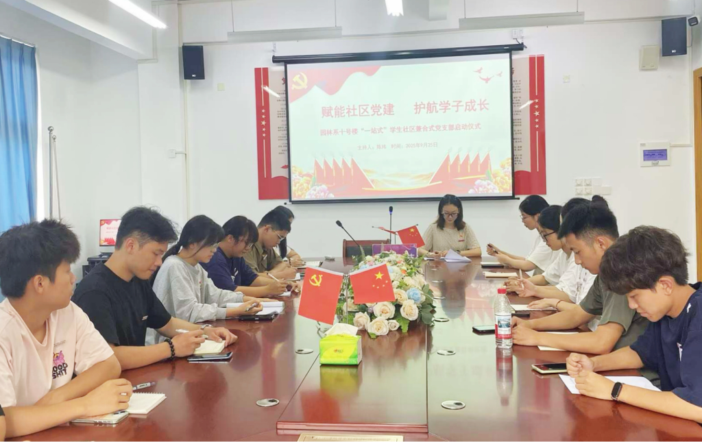 为深入学习贯彻习近平新时代中国特色社会主义思想、党的二十大和党的二十届三中全会精神,强化党建工作的政治引领和价值引领作用,在“一站式”学生社区,构建以党建为中心,推进党建进楼宇、进宿舍,打造横向到边、纵向到底、全面覆盖的党建引领体系。2025年9月25日,园林系十号楼“一站式”学生社区兼合式党支部启动仪式顺利举行。学生社区兼合式党支部书记陈玮主持,入党积极分子、学生党员代表参与,共同见证党建育人新阵地从“0”到“1”的第一步。