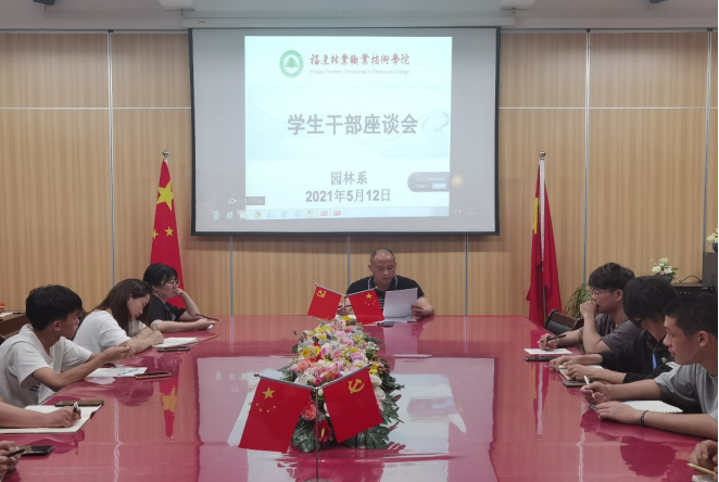 2021年5月12日19点,为倡导学生干部立足本职,服务学校发展,园林系于系会议室召开学生干部座谈会。会议由园林系党总支书记陈剑勇主持,园林系学生党支部书记吴锦鸿、园林系两委会全体学生干部出席参会。