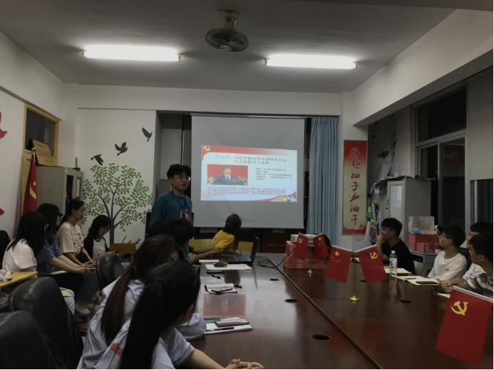 组织部副部长通过“党的十九届全国代表大会”的时间线,讲述了每一届党代会,都是党的发展进程的里程碑和标志性事件。从一大的中国共产党的诞生,到十九大的习近平新时代中国特色社会主义思想写入党章,每一届的党代会的召开,都象征着社会向前又迈出了一大步。重点介绍中国革命、建设、和改革的历史转折点的党代会。学生干部跟随着时间线对每一次的党代会精神进行了学习,更深层次地去领悟了党的精神,做到了对党史学习的温故而知新。