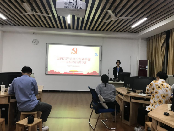 文艺部副部长以“没有共产党就没有新中国——庆祝建党百年华诞“为主题,通过中国共产党的光辉历史的时间线,讲解了从中国工人运动的第一次高潮到星星之火可以燎原,再到抗日战争胜利的历史意义、解放战争、三大战役。
