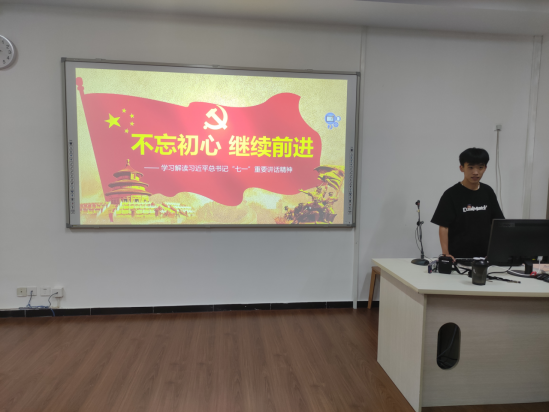 体育部部长以“不忘初心,继续前进”为主题,围绕着学习解读习近平总书记“七一”重要讲话精神这一节点进行阐述,回顾了中国共产党100年来团结带领全国各族人民不懈奋斗走过的光辉历程和作出的伟大历史贡献,讲解了近代以来我国社会发展的规律性认识,我们党的执政理念和执政方略,我们党对重大国内外问题的原则立场。