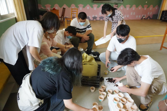 在学习了如何进行花盆植物栽培后,老师告诉大家完成种植小花苗的可以获得小盆栽与奖品。小朋友们在一旁早已跃跃欲试,手持小苗与小工具兴致勃勃地动手进行实操起来,一边自己试着配比土壤,一边请教老师与志愿者如何使小花苗树立在花盆里,通过植物实践活动使孩子们可以参与到“绿色生命”成长的过程中。