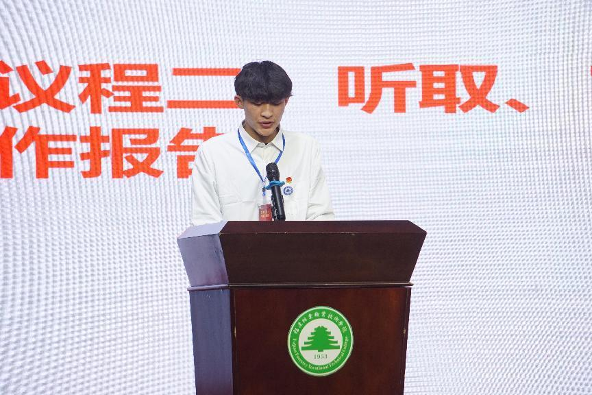 由谢国富同学代表园林系学生会委员会向大会作2022年学生会工作报告。
