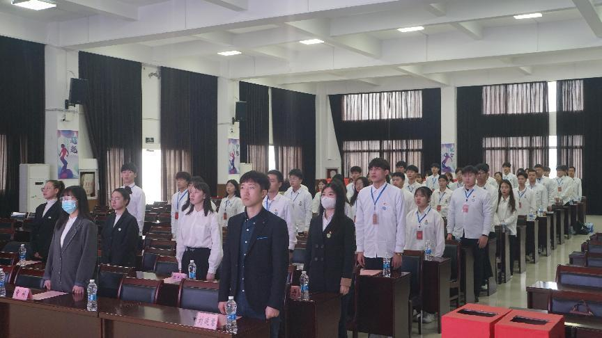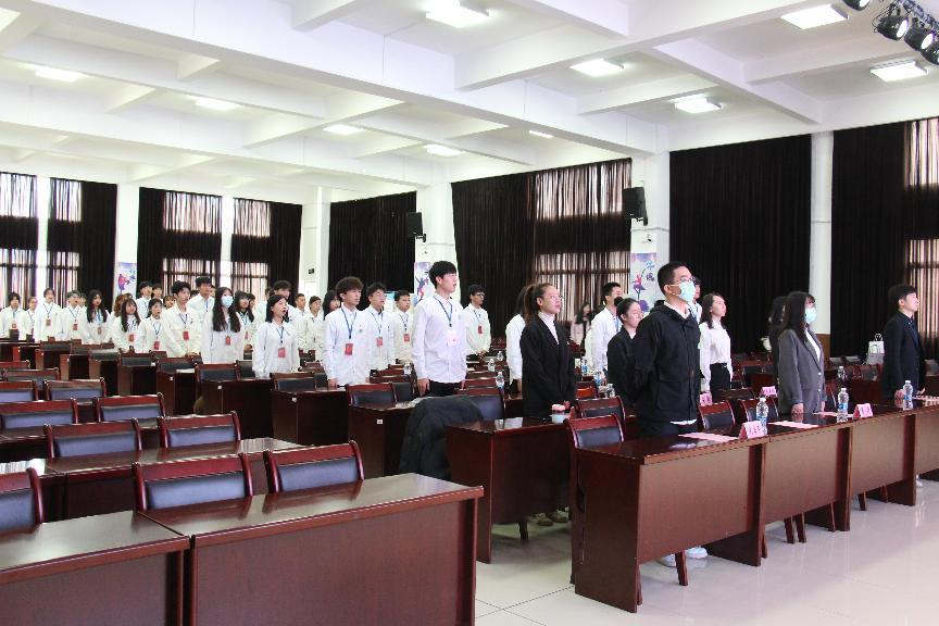 大会在庄严的国歌声中正式拉开序幕,全体参会成员起立奏唱国歌。