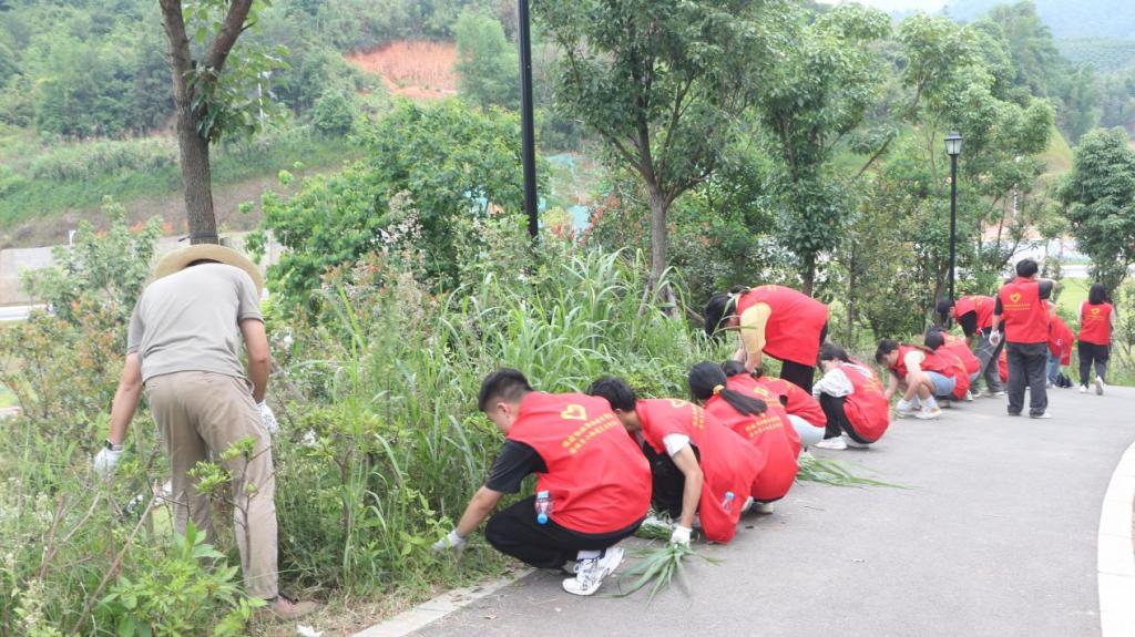 为了美化校园环境,2023年5月16日星期二下午,园林系小红花志愿服务队在龙景山开展拔草护绿志愿活动。