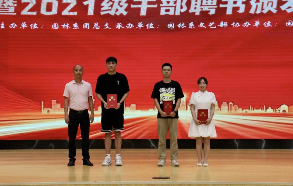 在随后的颁奖典礼中,园林系党总支书记陈剑勇、党总支副书记黄淑燕、专职辅导员倪海奔、刘延君、协会指导老师黄艳真为2021级两委会学生干部颁发了聘书。颁奖典礼结束后,在“数字炸弹”与“听歌识曲”的欢乐气氛下结束了本次活动。